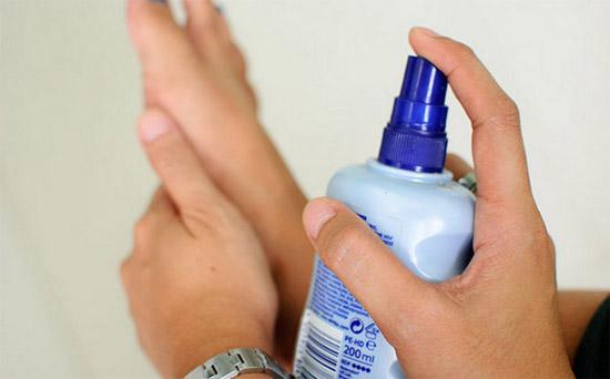- Ноги – распылите между пальцами, на верхнюю часть ступни и на подошве;