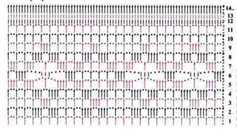 3 р.: сс. в арочку, *1 в. п., 2 с. с н. в арочку, 1 в. п., сс. в сл. арочку*, от * до *, заканчиваем вязание.