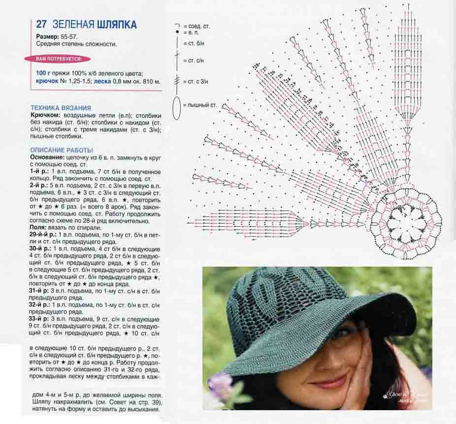 Схемы и описание вязания летних шляпок для женщин крючком