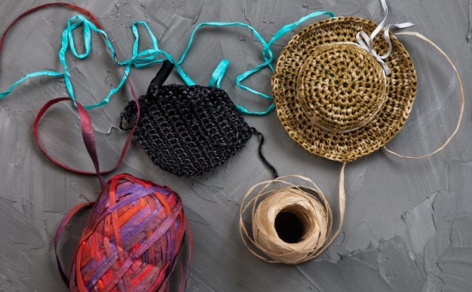 Для вязаных летних шляп рекомендуется выбирать хлопок, лен или вискозу. Но не все их разновидности можно использовать. Нить должна быть плотной, поэтому мягкий мерсеризованный хлопок не подходит. Шляпы, связанные из него, не будут держать форму. Лучше выбрать пряжу «Ирис», «Лилия», «Фиалка», «Нарцисс», нити с добавлением бамбука или микрофибры. Хорошая шляпа с широкими полями получится из рафии – это натуральное волокно, производимое из листьев пальмы. Существуют и искусственные аналоги такой пряжи. Рафия напоминает тонкие ленты, а связанное изделие похоже на соломенную шляпку.