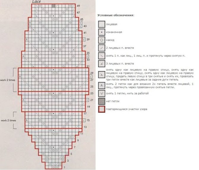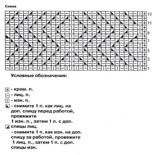 - ажур: выполняется по сх.; в изнаночных р. все петли провязываем изнаночными.