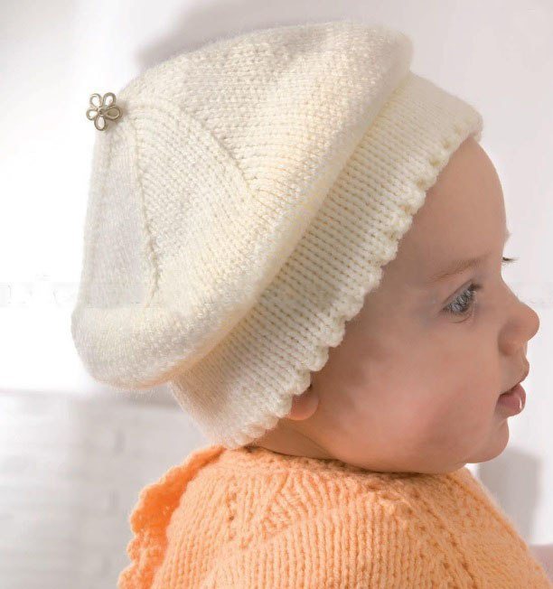 Примерно в возрасте одного года дети начинают ходить. Родители наряжают своих годовалых крох, как кукол, несмотря на будни и праздники. Красиво связанный берет для девочки спицами (1 год — прекрасный возраст, чтобы подарить ей такую красоту), позволит наряжать малышку каждый день. Единственно, что для такой крохи берет — удобный головной убор на лето. Прохлада осени и зимние морозы требуют более серьезного головного убора — на завязках.