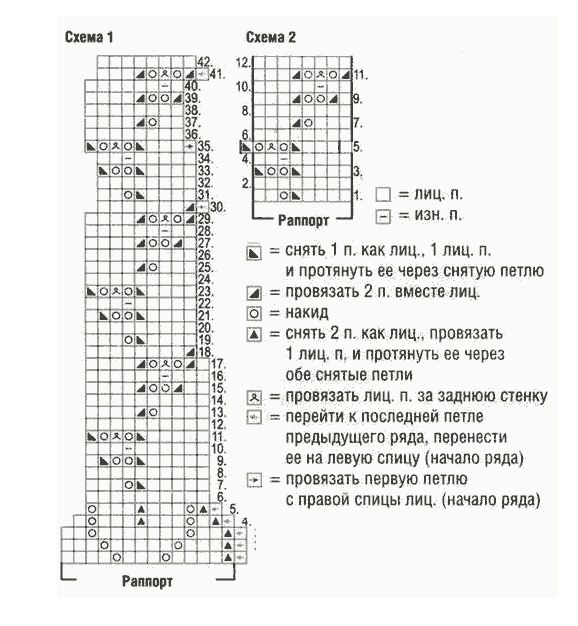 - ажурный узор: -выполняется по схеме 1 и схеме 2.