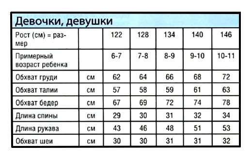 Размерная сетка для вязания детской туники спицами: