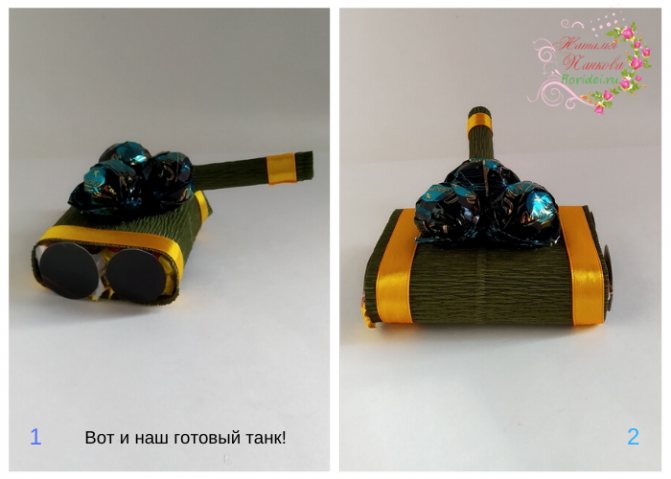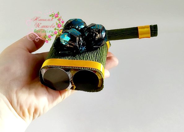 Еще один мастер-класс изготовления танка от меня. А что, если юноша, которому вы хотите подарить такой необычный и модный презент, больше предпочитает шоколадки? Тогда такой вариант будет как раз кстати.