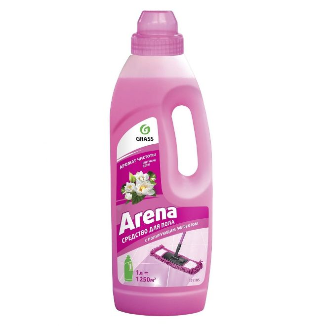- Жидкое средство «Grass Arena» с полирующим эффектом. Подходит для любых напольных покрытий, особенно для ламината и паркета. В составе нет хлора, средство не оставляет разводов.