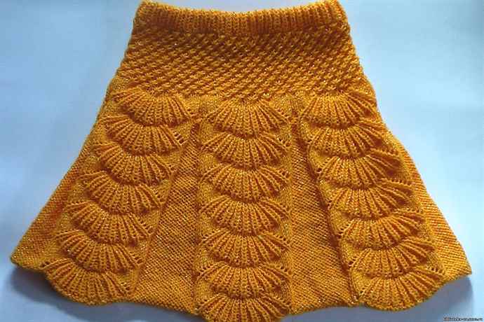 - Точно так же вывязываем второе полотно, и сшиваем оба полотна, а на поясе формируем резиночку. Юбка готова.