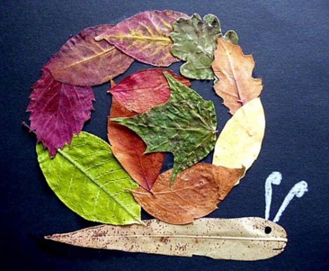 Аппликации из природного материала в детском саду не отличаются большой сложностью. Для них можно использовать не только листья, но семена, желуди, веточки. Также применяют цветную бумагу, картон.