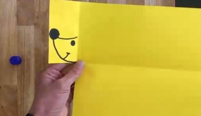 Берете лист бумаги. Сворачиваете ее в дину пополам. В верхней части половинки рисуем мордочку ежа.