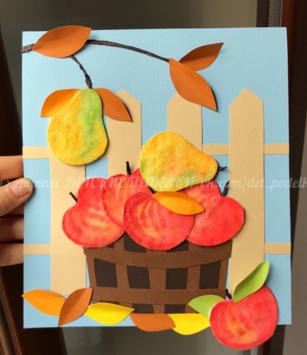 Еще одной замечательно темой для аппликации будет ваза с фруктами.
