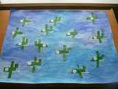 Для работы нам понадобится клей, разноцветная бумага и картон-основа голубого цвета.