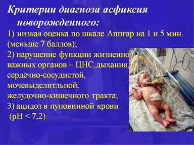 Асфиксия, вызванная гипоксией: Это состояние возникает, когда уровень кислорода в крови новорожденного резко снижается, что может быть связано с различными факторами, такими как преждевременные роды, инфекции или проблемы с плацентой.