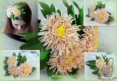 Теперь приклеиваем листья снизу к середине цветка. Располагать их необходимо проволокой вниз. Астра готова.