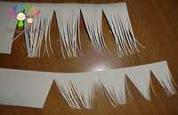 Теперь вырезаем 15 отдельных листочков того же размера, что и первые, и прикладываем их к утюгу, пока они еще теплые один конец скатать пальцами. Для пышности цветка сделать 20–25 лепестков всех 4 размеров и провести для них тепловую обработку.