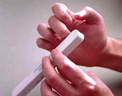 Проводить по длине, не отрывая бафик, в одном направлении, не останавливаться, не менять нажим, пользоваться не чаще одного раза в неделю, для ослабленных ногтей – как можно реже. По окончании бережно втереть каплю масла чайного дерева, чтобы «запечатать» край, предотвратить расслаивание, продезинфицировать инструмент.