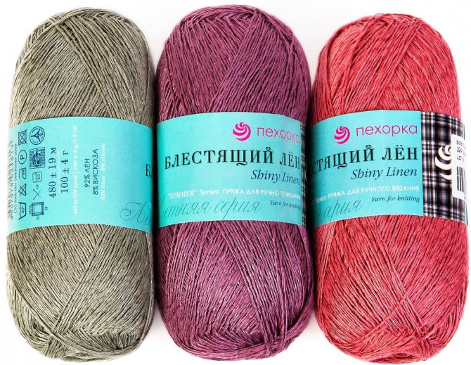 - Натуральные. К ним относятся лен, хлопок, шерсть, шелк и прочие. Лен ограничен по оттенкам, шерсть — прихотлива в уходе, хлопок — представлен широкой палитрой, но достаточно долго высыхает. В связи с этим для вязания обуви рекомендуется использовать шелковые нити, если важны натуральность и экологичность материала.