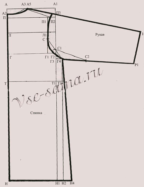 Простой способ построения выкройки для не облегающих вещей. Из сорочки получаем чертеж халата.