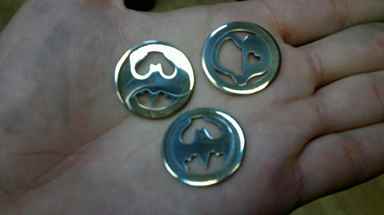 — Рисуем на листке бумаги все детали будущего брелка и далее просто подкладываем монетки под каждую деталь и немного придавив, делаем контур. Таким образом переводим рисунок на монеты.