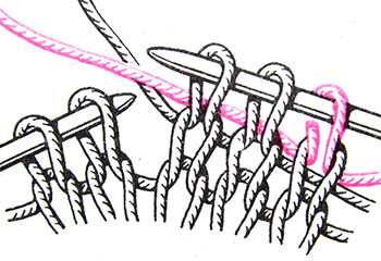 Вывязывать новую петлю из протяжки можно двумя способами, которые дают различные результаты. Эти способы основаны на свойстве строения петли. Новая петля вывязывается из протяжки между петлями предыдущего ряда.