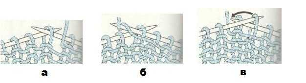 Прибавление петли путём провязывания петли предыдущего ряда дважды |