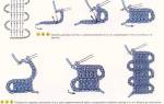 - Наберите 139 петель, свяжите 5 см в высоту двойной резинкой. В первом ряду чередуйте 1 лицевую петлю, 1 изнаночную петлю. Во втором ряду лицевую петлю провяжите лицевой, изнаночную снимите, оставив нить перед собой. В третьем ряду провяжите лицевой петлю, которая была снята в предыдущем ряду, а следующую снимите, оставляя нить перед собой. Повторяйте узор со второго ряда.