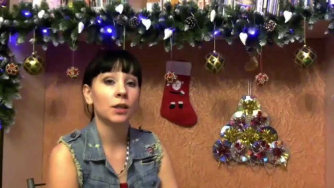 Диски приклеиваем сразу. После высыхания вырежьте по контуру и прикрепите к стене. Украсьте по своему усмотрению (бусы, снежинки, маленькие шарики, елочная гирлянда).