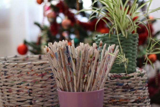 Материал выбран, в нашем случае это газеты, теперь необходимо подготовить инструменты для сборки трубочек. Самое важное — это канцелярский нож или ножницы, при помощи которых будут разрезаться газеты.