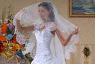 Многие невесты останавливают свой выбор на короткой фате, доходящей до плеч. Прежде всего, это обусловлено удобством ношения. Таким образом, невеста вроде отдает дань свадебным традициям, но фактически фата играет роль аксессуара, не причиняя особых неудобств.