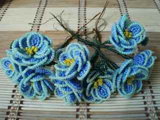 Распускающиеся бутоны плетем так же, но 3 петельки из 7 плетутся голубым бисером. Таких бутов плетется в количестве 2 штук.