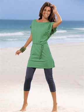 Стилисты считают, что лучше всего сочетать тунику с узкими брюками и юбками. Очень красиво может выглядеть туника и с узкими джинсами, леггинсами, шортами и брюками-стрейч. Что касается юбок, то лучше всего с туниками смотрятся юбки-карандаш и мини. Очень эффектно смотрится туника в греческом стиле.