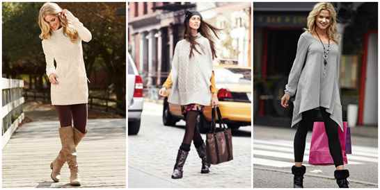 | Вязаная туника оверсайз | [Ссылка на фото] | Леггинсы, узкие брюки, высокие сапоги, ботинки челси |