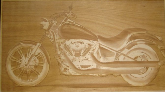 По завершении всего рисунка его шлифуют и покрывают морилкой. После высыхания нужно пройтись наждачной бумагой так, чтобы стереть проморенный слой с выступающих участков и оставить его на фоновых.