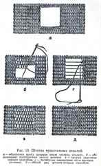 - Если штопают дыры, то сначала протягивают продольные нити, а следом поперечные или наоборот.
