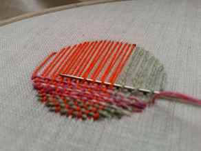 - При ремонте на разноцветной ткани соблюдается порядок распределения цвета ниток, чтобы восстановить рисунок.