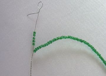 Наберите на проволочку много зеленого бисера.
