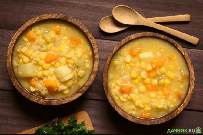 Готовность горошин в супе проверяется таким же способом: попыткой их раздавить. Блюдо готово, если горошины легко раздавливаются.