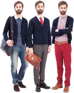 Кардиган прекрасно сочетается с джинсовыми, твидовыми брюками, также его можно носить с чиносами, шортами. Когда-то, в прошлом веке, кардиганы носили вместе с костюмами, но это было так давно, что сейчас такой стиль считается чем-то неприличным.