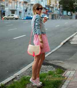 В спортивном стиле преобладает удобная одежда из денима и других натуральных тканей. Это могут быть юбки в клетку с карманами. А также варианты в полоску, к которым подбирают футболки и майки.