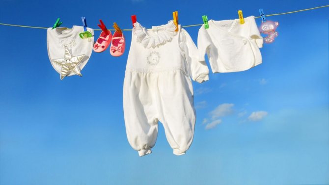 - Тщательно постирайте одежду в машинке, используя детский порошок.
