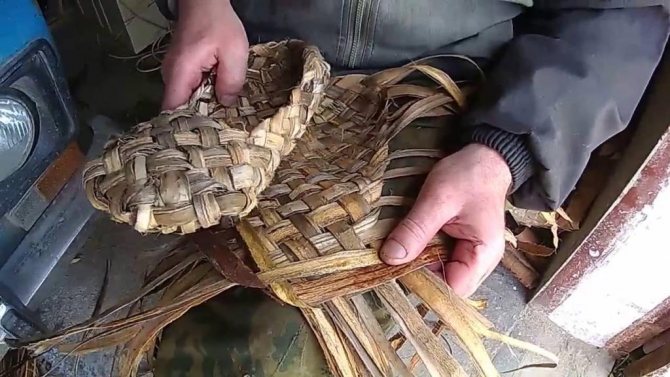 Данное сырье очень распространено в качестве материала для плетения лаптей. Готовое изделие выглядит красиво и напоминает обувь из натурального материала.