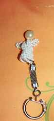 Самый простой способ – маленький сувенир в виде брелока или подвески из бисера. Это техника объемного плетения на леске. Для головы ангела берется одна большая светлая бусина, если найдете – бывают бусины с глазками и улыбкой.