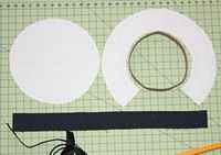 После перенесения всех элементов, можно увидеть три части — околыш, тулья и верх шапочки. Для околыша нужна ткань темного цвета, тулья и верх бескозырки приклеиваются на белую ткань. При вырезании деталей для бескозырки не нужно забывать о припусках в размере 0,5 см, при этом околыш нужно сложить вдвое и обработать горячим воздухом. Данная часть бескозырки должна быть очень плотной, поэтому ткань должна быть плотной или использовать ее в несколько слоев.