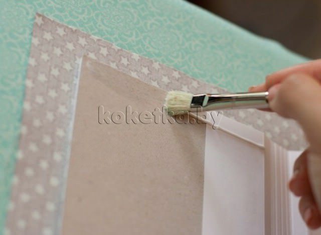Промазываем края и приклеиваем к обложке стопку бумаги или старую книгу.