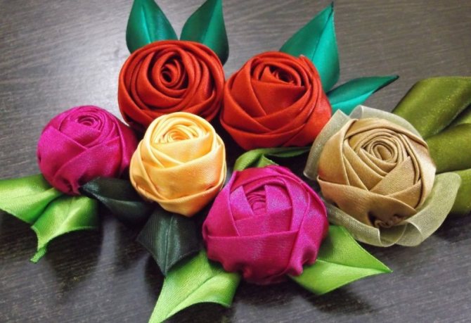 Из блестящего атласа получаются восхитительные цветы с гладкими краями. Ими можно оформить свадебное торжество, юбилей или другой праздник. Такие изделия хороши и как украшение интерьера, и как часть декора подарочной упаковки. Хорошим подарком станет роскошный букет, составленный из атласных роз, только прежде следует осторожно выяснить, как относится человек к искусственным цветам.