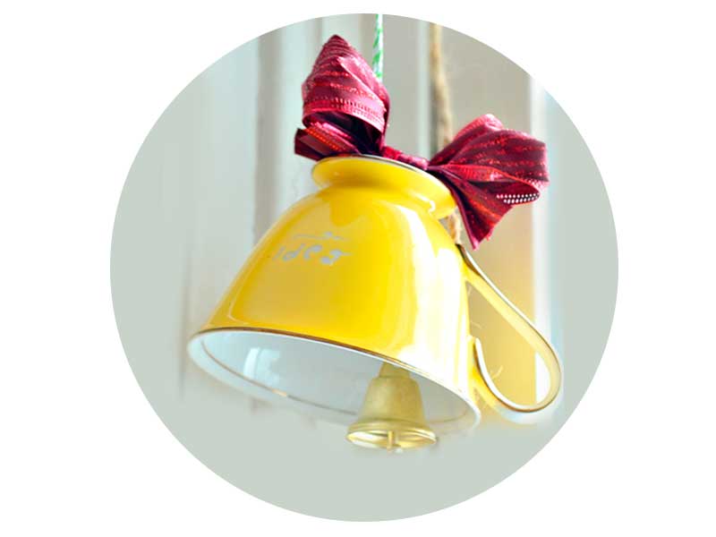 - Чтобы он звонил, нужно, чтобы он свободно висел, для этого делаем на ленте узелок между колокольчиком и чашкой.