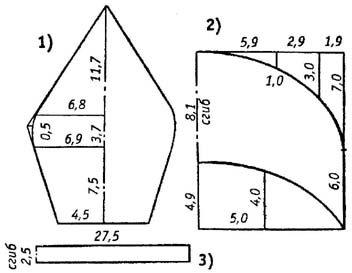 3. Боковая часть тульи со сгибом — 1 деталь.