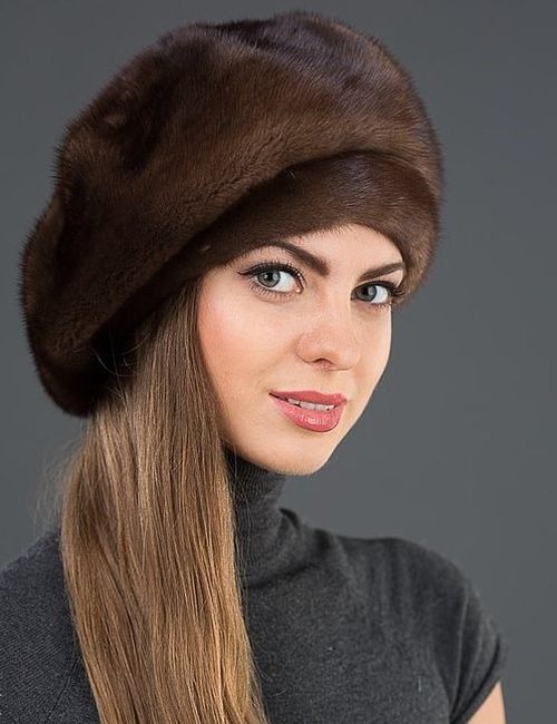 Самая распространенная модель, которую можно встретить в магазинах. Его просто шить, поэтому он так популярен среди других изделий. Женские береты из норки, песца, соболя идеально смотрятся с верхней одеждой из кожи, пуховиками и зимними куртками. С норковой шубой его необходимо подбирать аккуратно. Он должен быть на тон темнее или светлее, чем верхняя одежда.