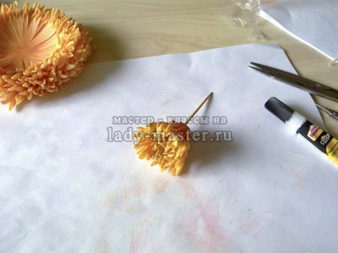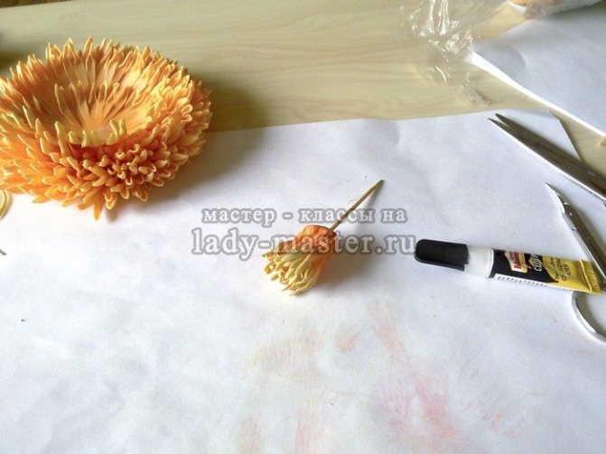 Сборка хризантемы из фоамирана.