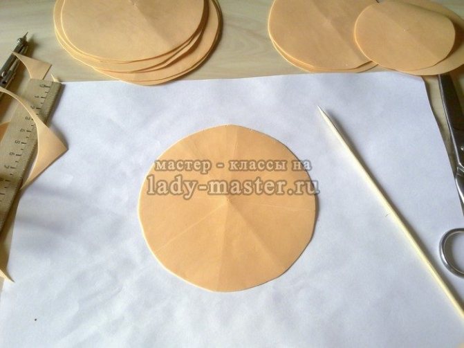 - Детали по 4 см надрезают на 12 частей, большие заготовки делят на 16 частей. Не дорезать до середины круга.