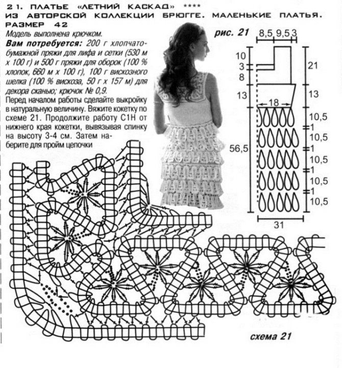 Как уже упоминалось выше, используя брюггское кружево можно связать оригинальные предметы гардероба. Мастер класс расскажет, как изготовить нежное летнее платье.